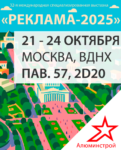 С 21 по 24 октября 2025 года компания Алюминстрой примет участие в 32-й международной специализированной выставке «РЕКЛАМА-2025», проходящей в Москве, на ВДНХ, в Павильоне 57 (Россия — моя история). Мы приглашаем партнёров, клиентов и всех заинтересованных специалистов посетить наш стенд и познакомиться с новыми решениями в сфере рекламных материалов!